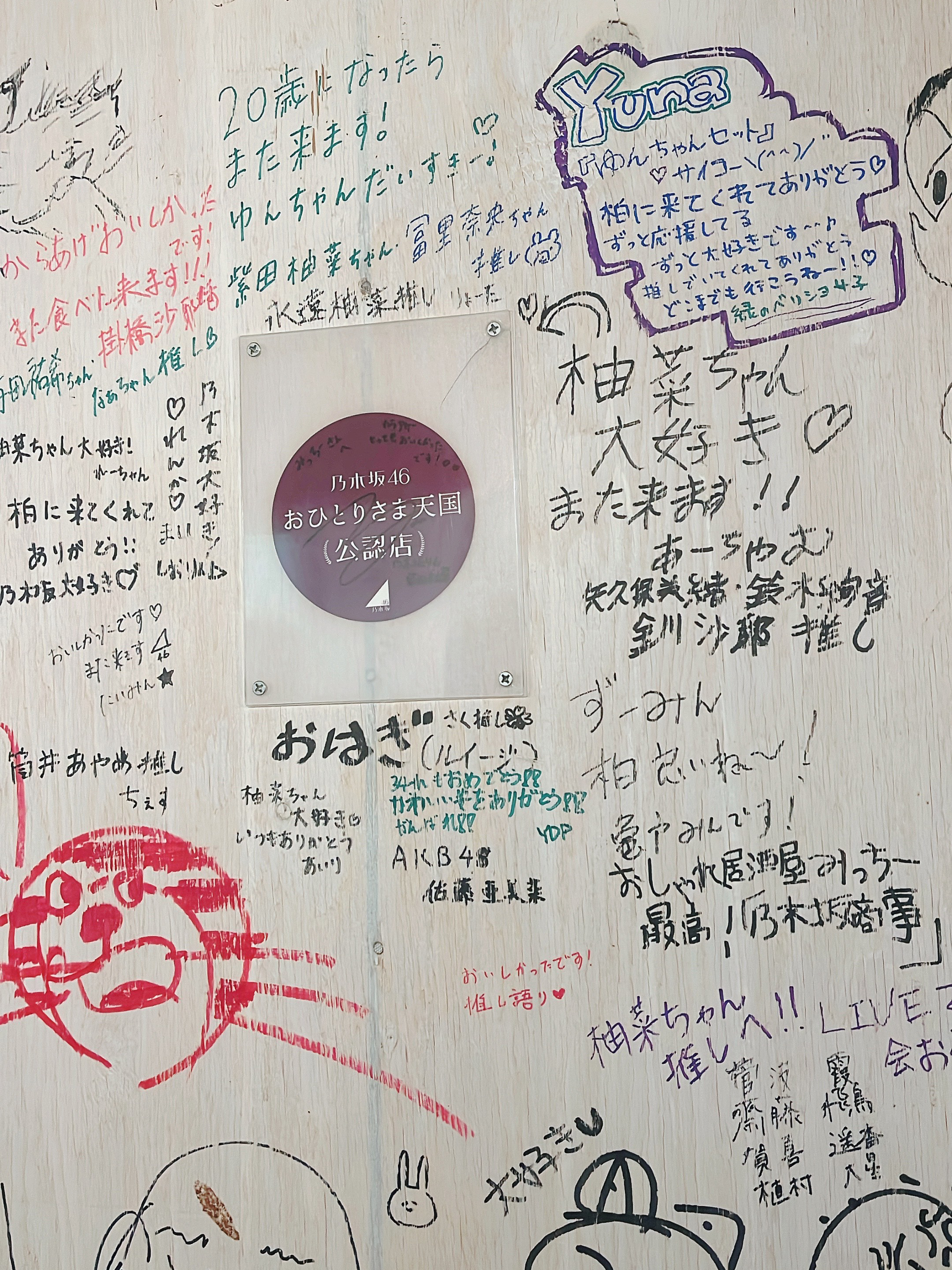 乃木坂ファンの方がメッセージを壁に書いたり、グッズを置いていってくれたりしてます。